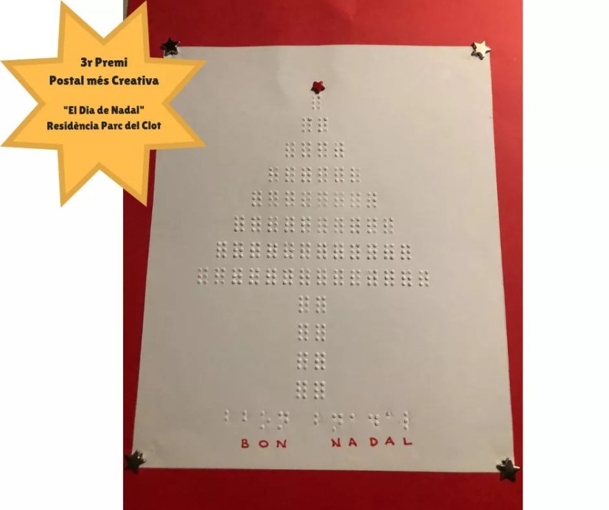 Es un trabajo donde predomina el lenguaje braille, la persona que la ha creado, el SR. Roger, aprendió braille hace unos meses , a los 82 años, todo un reto y toda una inspiración para los que piensan que la edad es un problema para adquirir nuevas habilidades.